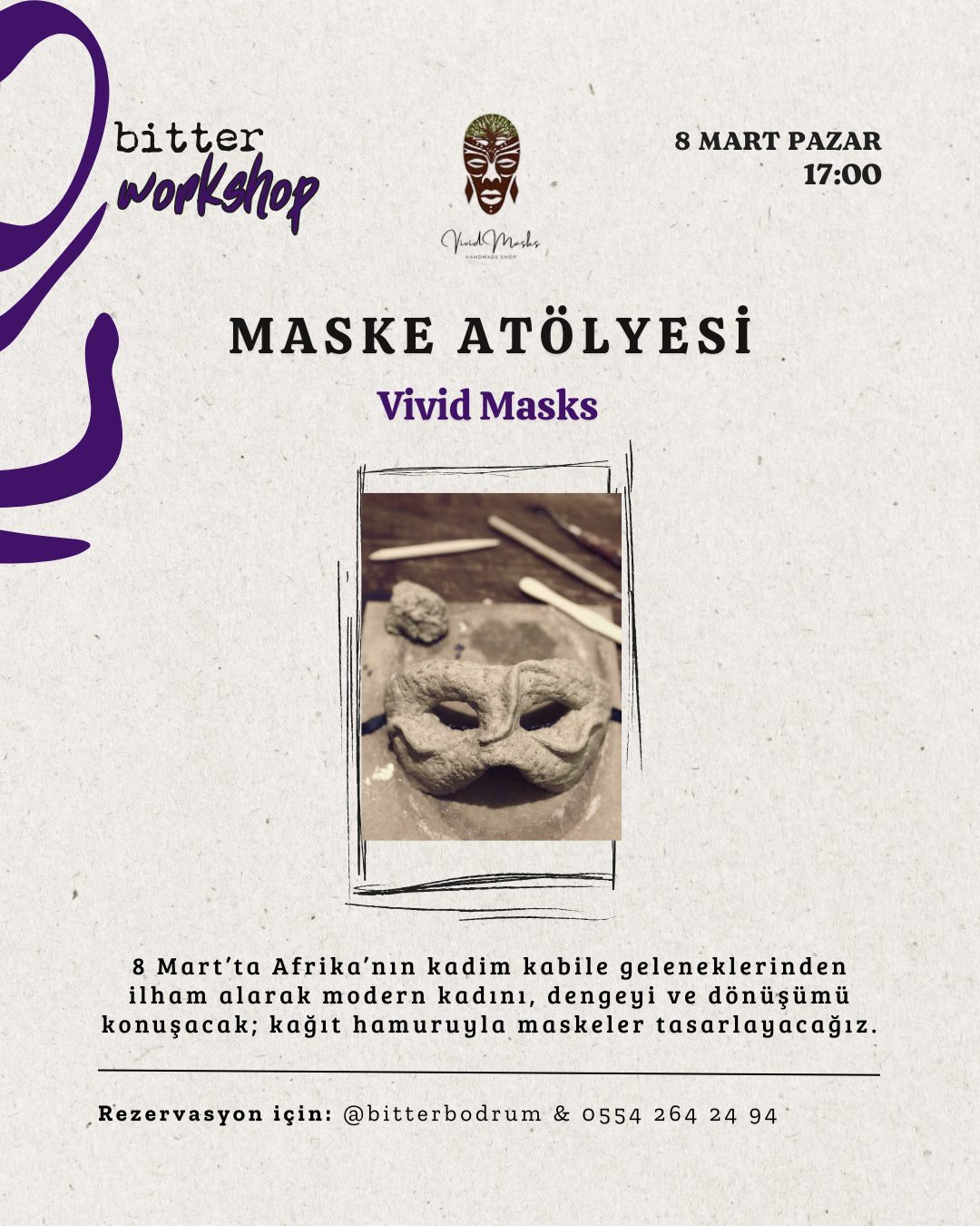 8 Mart'ta bitter'de Afrika'nın kadim kabile geleneklerinden ilham alarak modern kadını, dengeyi ve dönüşümü konuşacak, kağıt hamuruyla kendi maskelerimizi şekillendireceğiz.