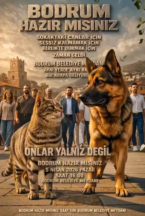 Bodrum'da sokaktaki hayvanlar için bir araya gelme çağrısı. Kısa konuşmalar ve dayanışma aktiviteleriyle farkındalık yaratılması amaçlanıyor. Herkesin katılabileceği topluluk buluşması.
