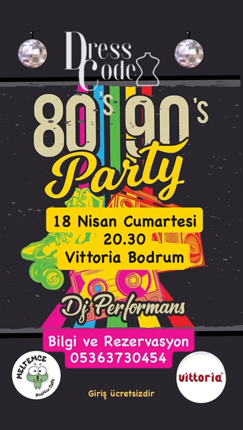 DJ eşliğinde 80'ler ve 90'ların pop ve dans hitleriyle dolu bir parti gecesi. Enerjik bir dans atmosferi ve nostaljik setlerle eğlenceye davet ediyor.
